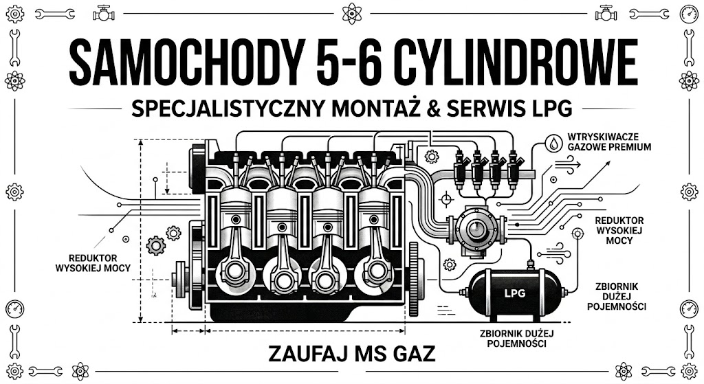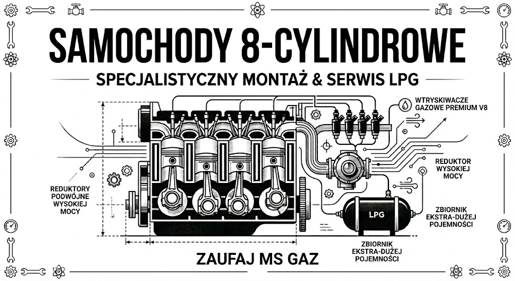 Najwyższa szkoła montażu dla potężnych silników 8-cylindrowych. Stosujemy podwójne układy reduktorów i zaawansowaną elektronikę, aby zapewnić stabilną pracę w każdym zakresie obciążeń. Twoje V8 pokocha gaz w MS GAZ!