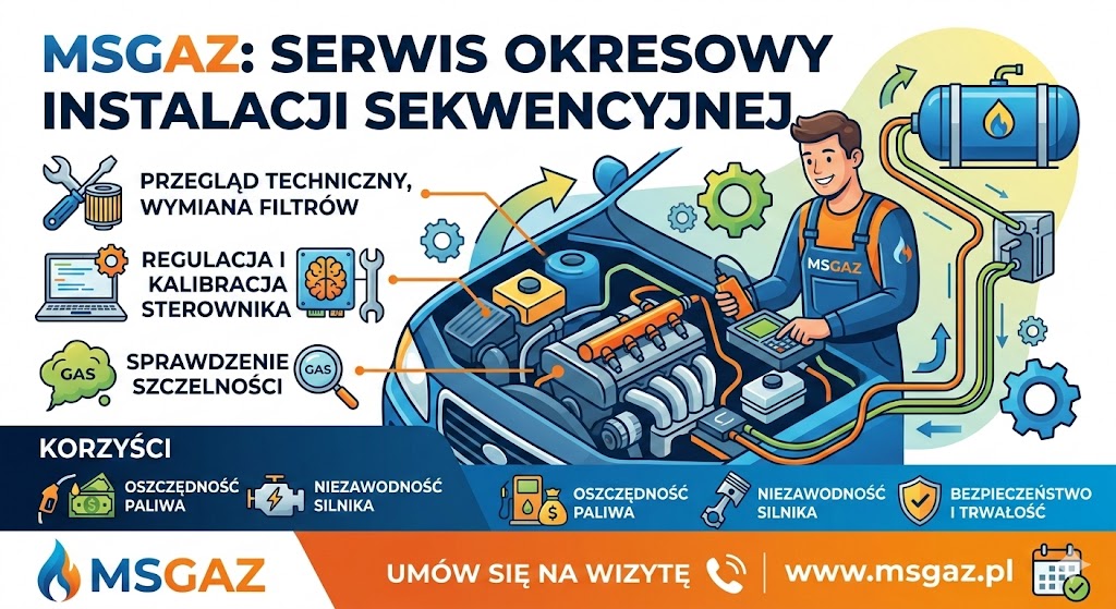Zadbaj o czystość układu i żywotność wtryskiwaczy. Serwis obejmuje wymianę filtrów fazy ciekłej i lotnej, sprawdzenie szczelności oraz diagnostykę komputerową systemu sekwencyjnego.