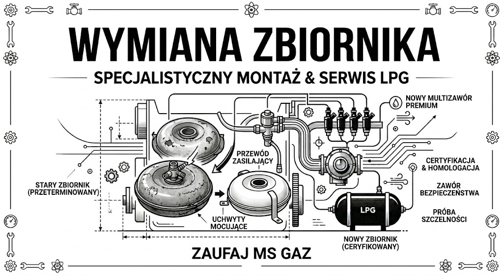 Kończy Ci się ważność zbiornika? Oferujemy szybką wymianę butli na nową z kompletem dokumentów do dowodu rejestracyjnego i przeglądu technicznego. Bezpieczeństwo i certyfikacja gwarantowane.